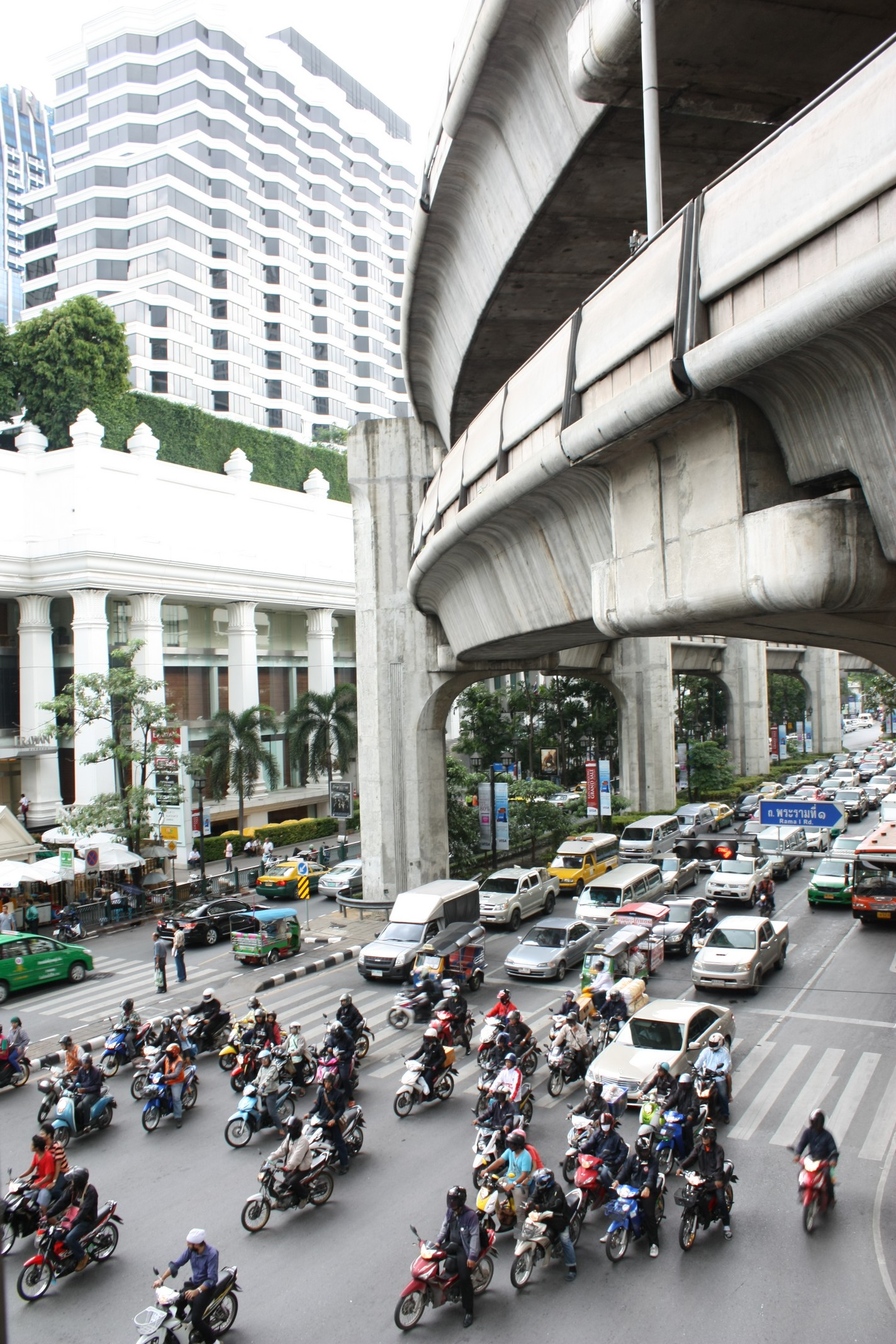 Il traffico è stranamente ordinato per una metropoli asiatica, almeno per come le mostrano i documentari.