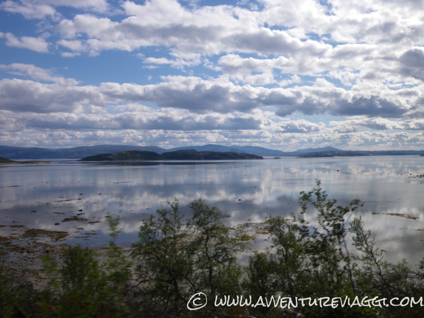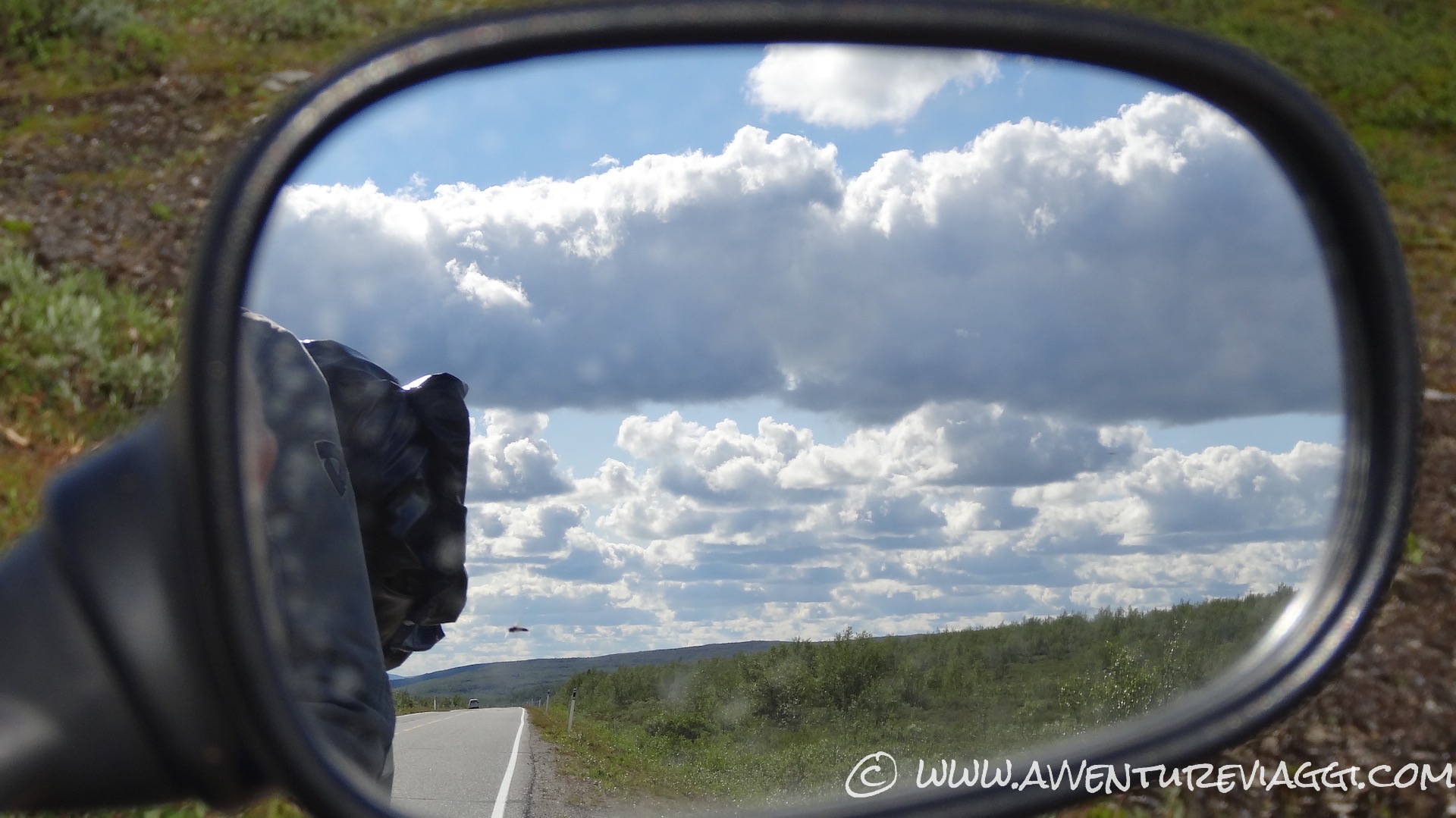 Appena passati Ivalo, la strada sembra uni scenario surreale, lunghe salite seguite da altrettanto lunghe discese, dritte come un fuso, fiancheggiati da arbusti timidi e un cielo azzurro e limpido tale che le nuvole sembrano dipinte…
