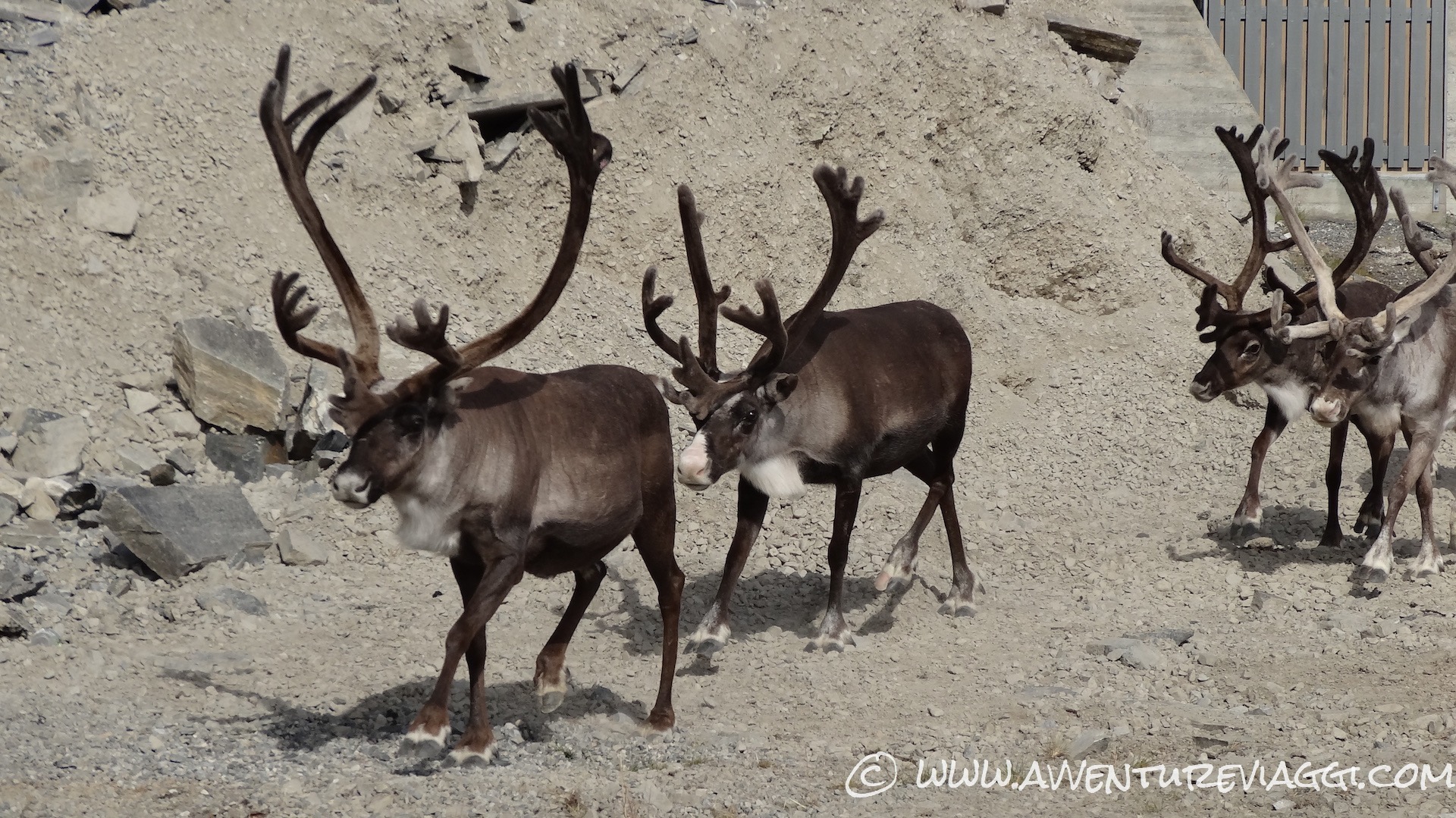 La strada che ci porta al “Mappamondo” è a dir poco incredibile, 30km di sali-scendi e di tornanti a strapiombo sulla vallata, renne che girano indisturbate in branchi numerosi, la vegetazione ridotta al minimo x via del clima rigido… Spettacolo!