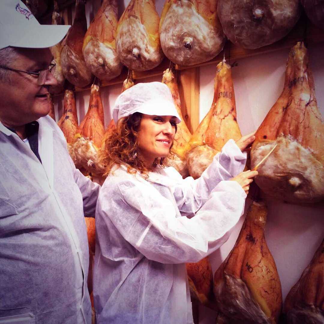 Seguiamo in particolare le fase di stagionatura del prosciutto, in totale 18 mesi, dalla salatura e massaggiatura, alle diverse asciugature (a freddo e a caldo) fino alla marchiatura con il bollino di qualità e all’essiccazione finale.