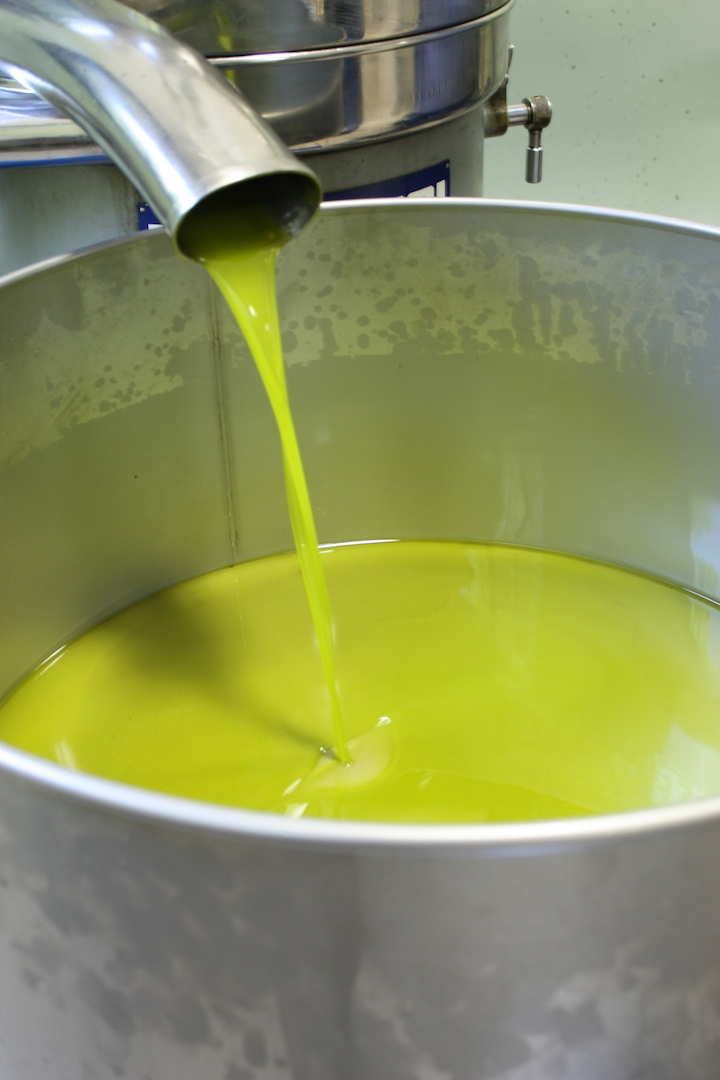 La fase di “riposo” nel decanter dove la pasta delle olive, ormai simile ad un paté resta per alcune ore; e quindi la centrifuga, che separa la parte solida da quella liquida.